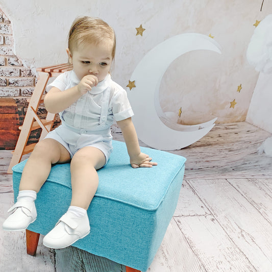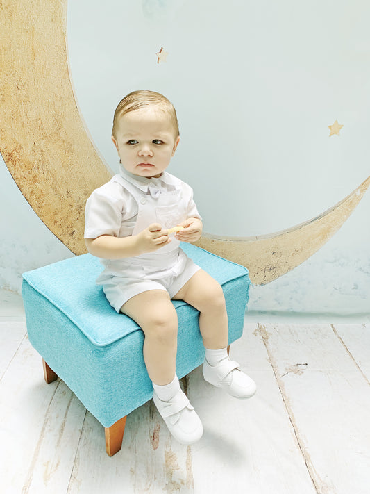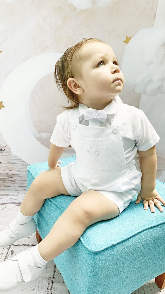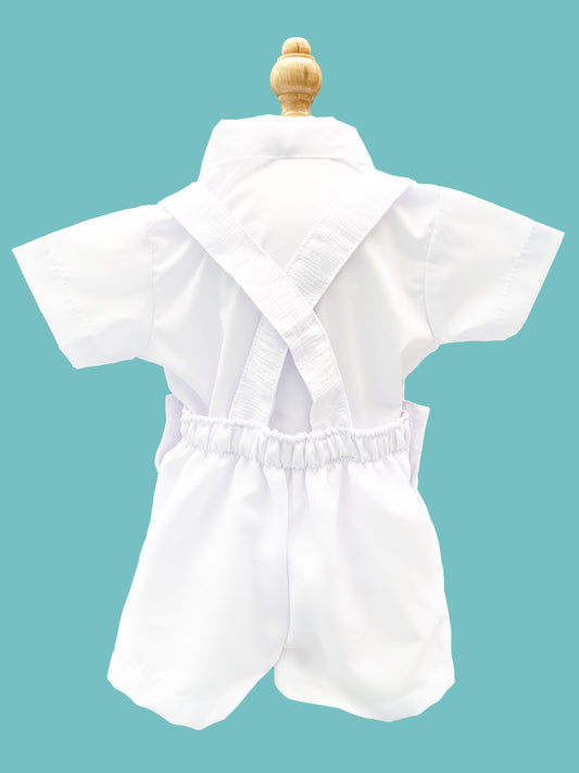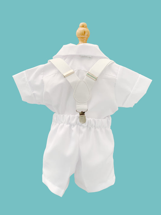 Traje 4 piezas Peter Pan tirantes blancos estilo pantalón o short