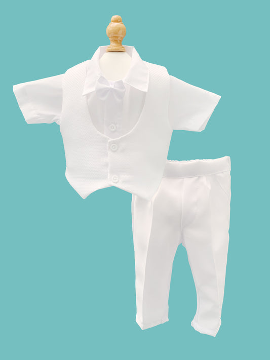 Traje con chaleco labrado con puntos estilo pantalón o short