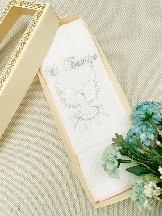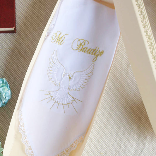 Pañito Personalizado Hipoalergénico Espíritu Santo opción de color dorado o plateado