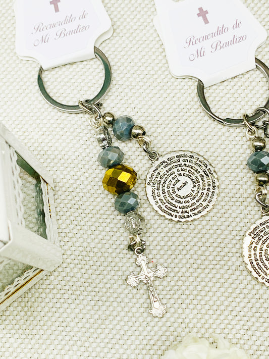 Llavero con Rosa de Guadalupe Virgencita y Padre Nuestro