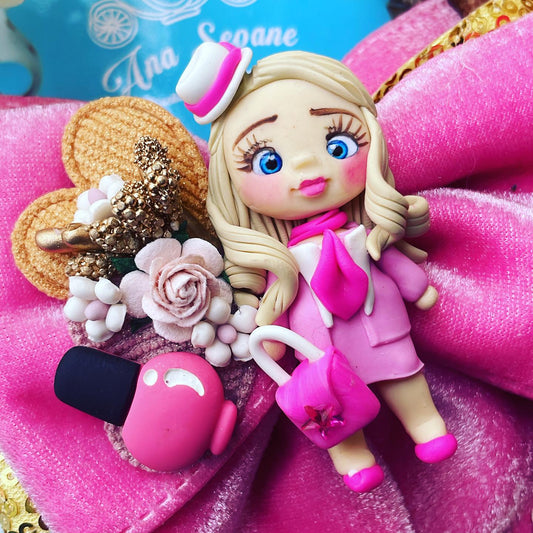 Lazo temático Barbie| Azafata con material gamuza fucsia