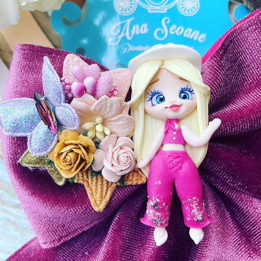 Lazo temático Barbie| Baquera con material gamuza vino