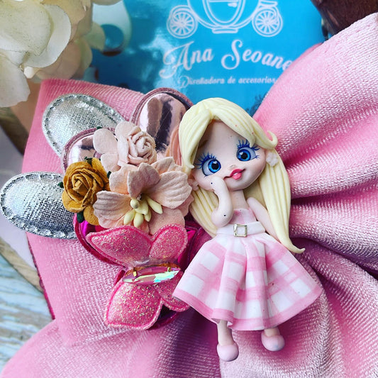 Lazo temático Barbie| Princesa con material gamuza fucsia