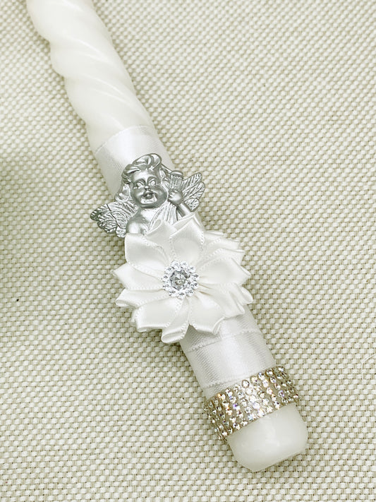 Candela diseño con conchitas y cruz plateadas °