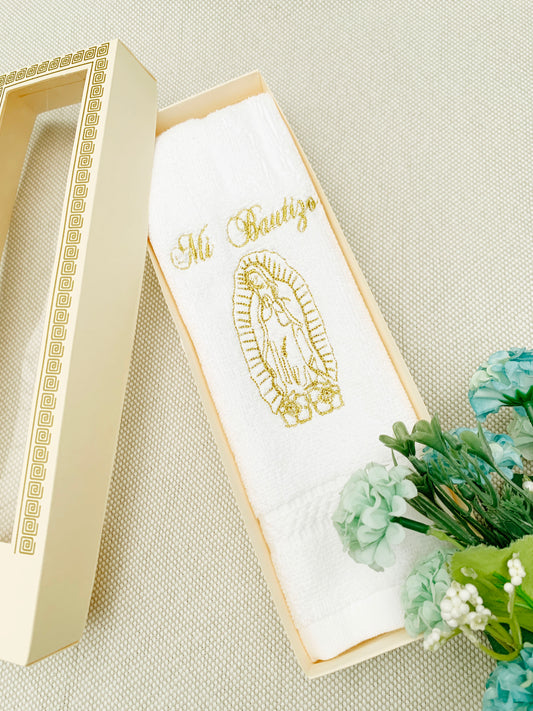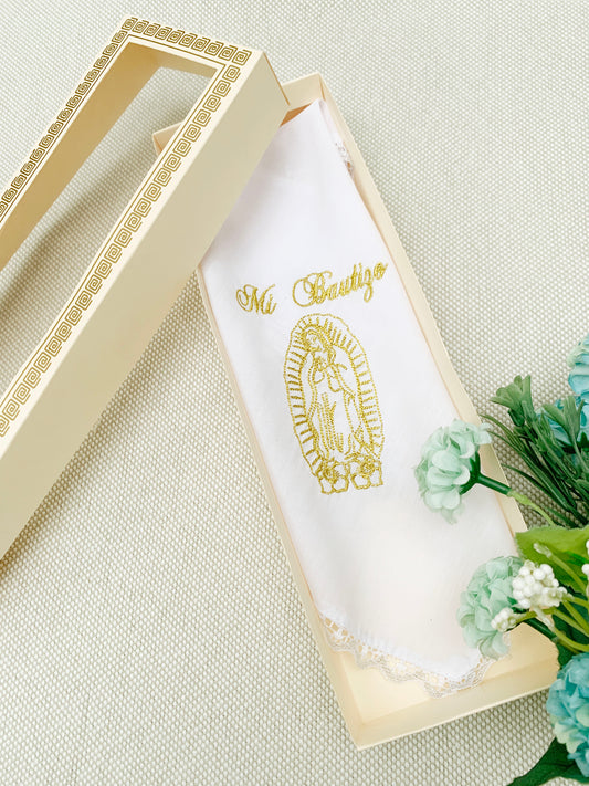 Pañito Personalizado Hipoalergénico Virgencita de Guadalupe opción de color dorado o plateado