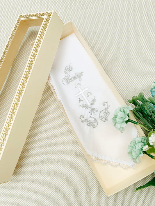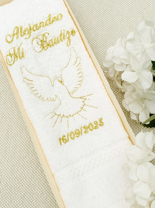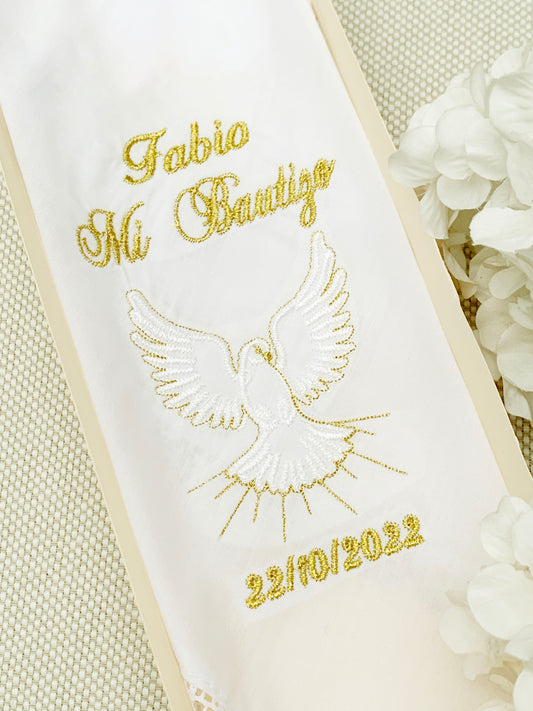 Pañito Personalizado Hipoalergénico Espíritu Santo opción de color dorado o plateado