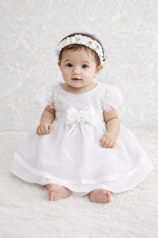 Vestido 3 piezas con labrado + cinturón + calzoncito. Colección Ángel de la guarda Estilo 1