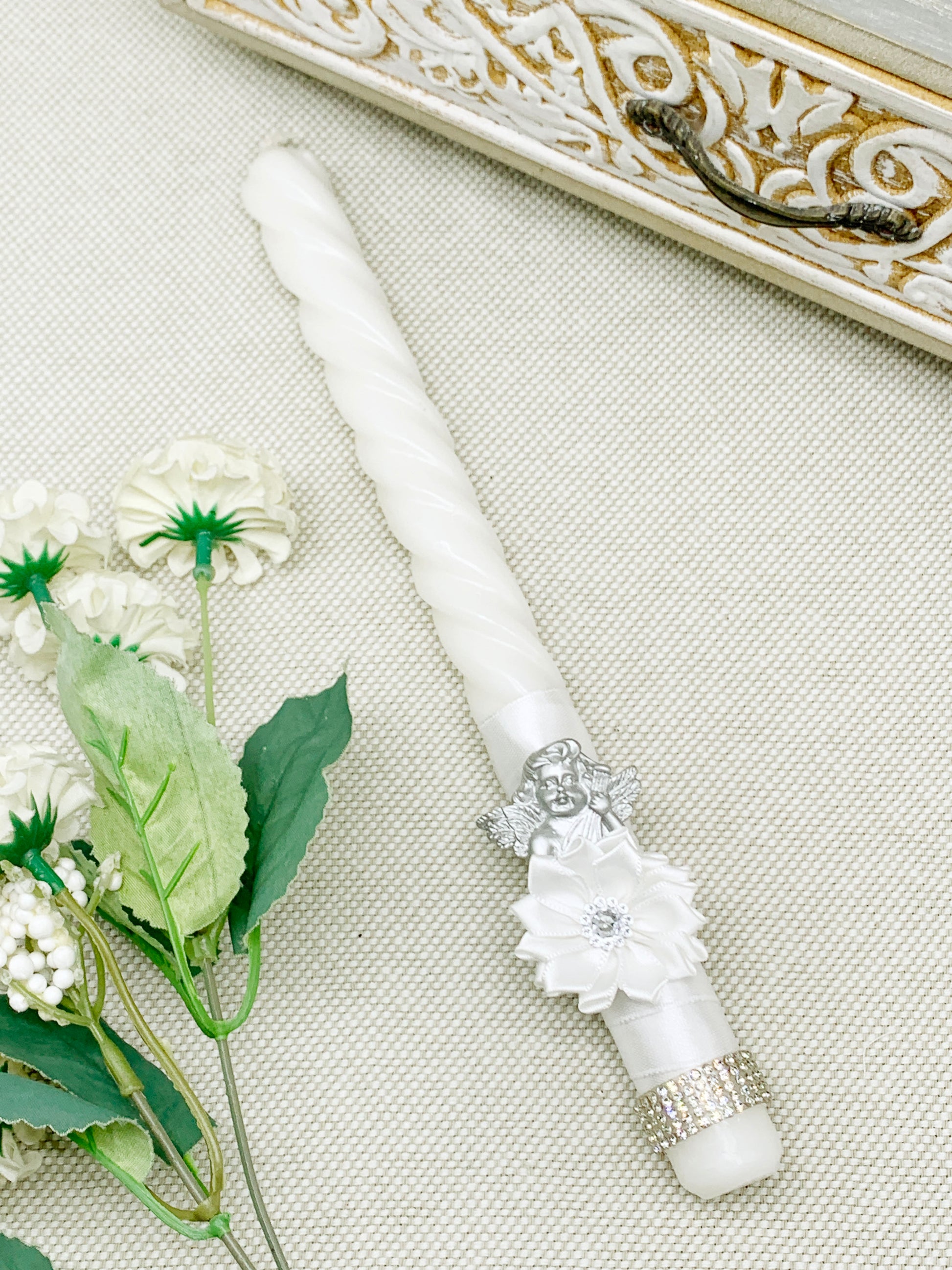 - Candela delgada decorada artesanalmente.
