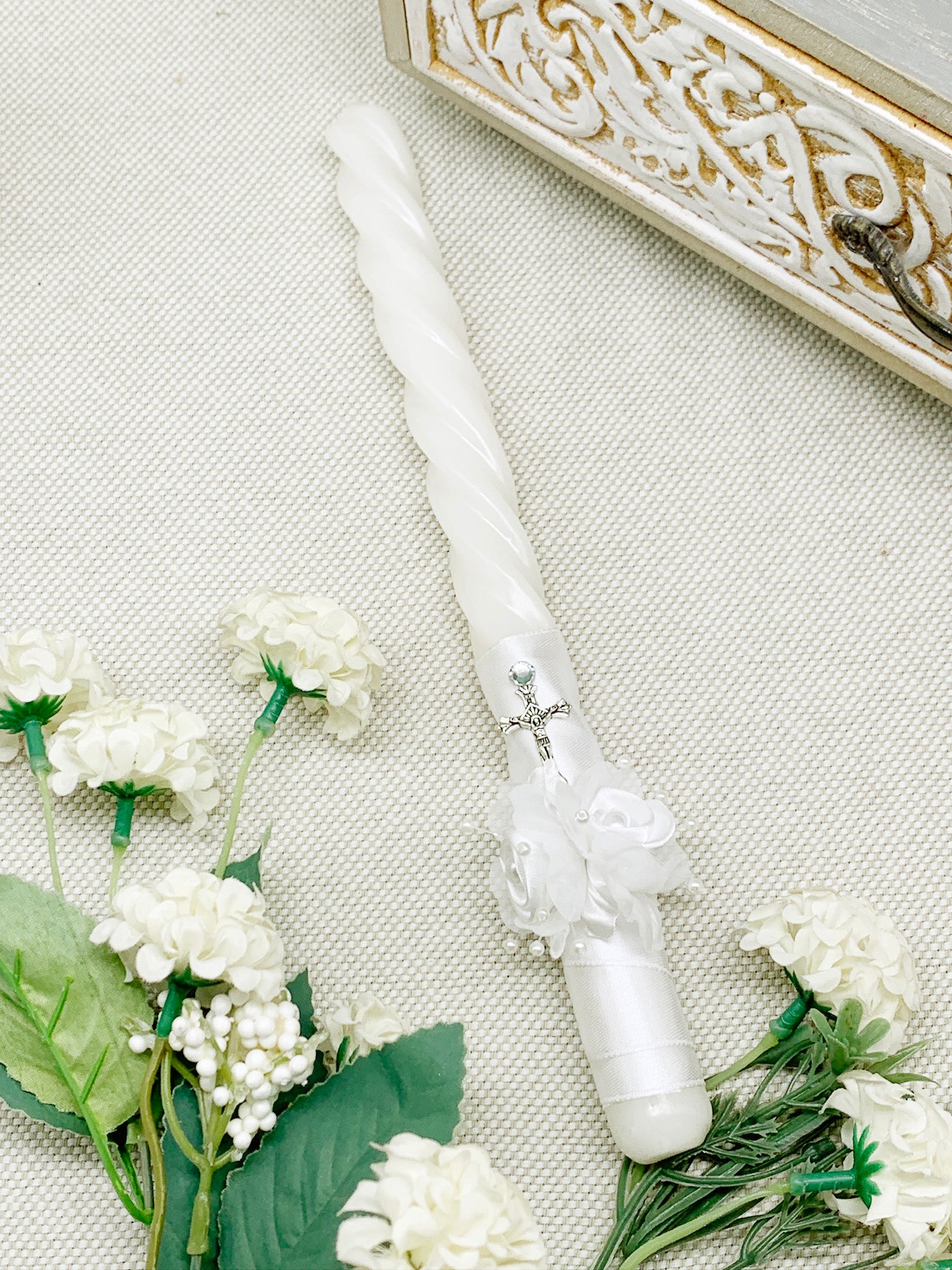 - Candela delgada decorada artesanalmente.