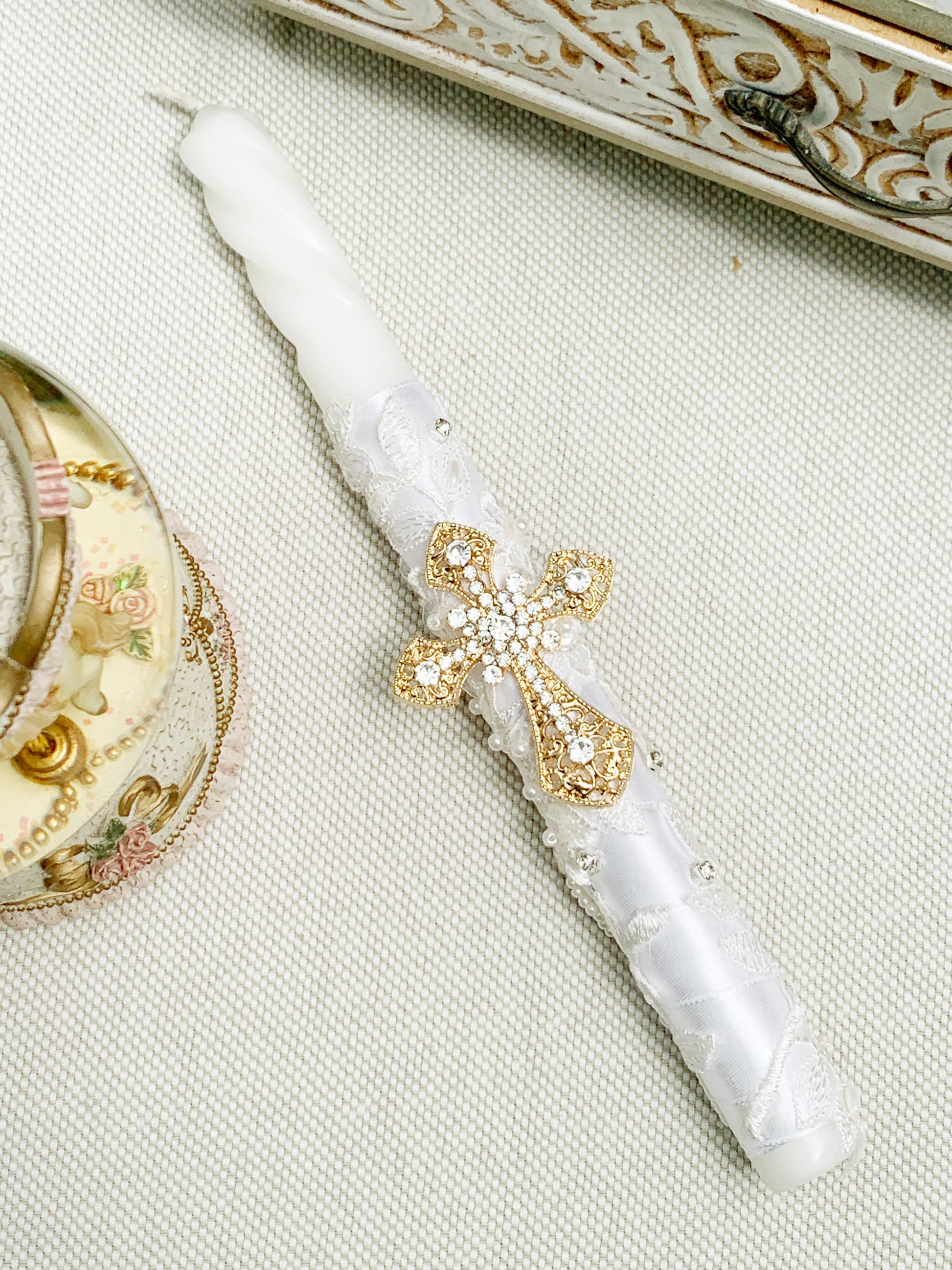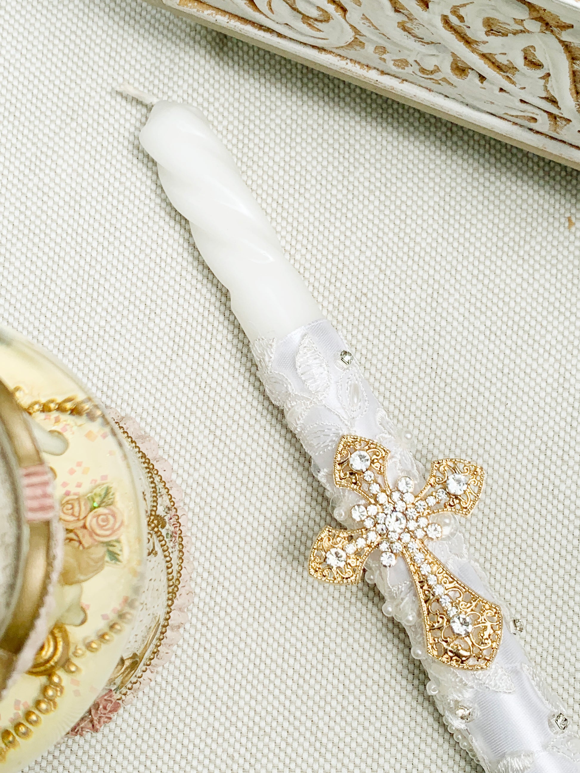 - Candela delgada decorada artesanalmente.