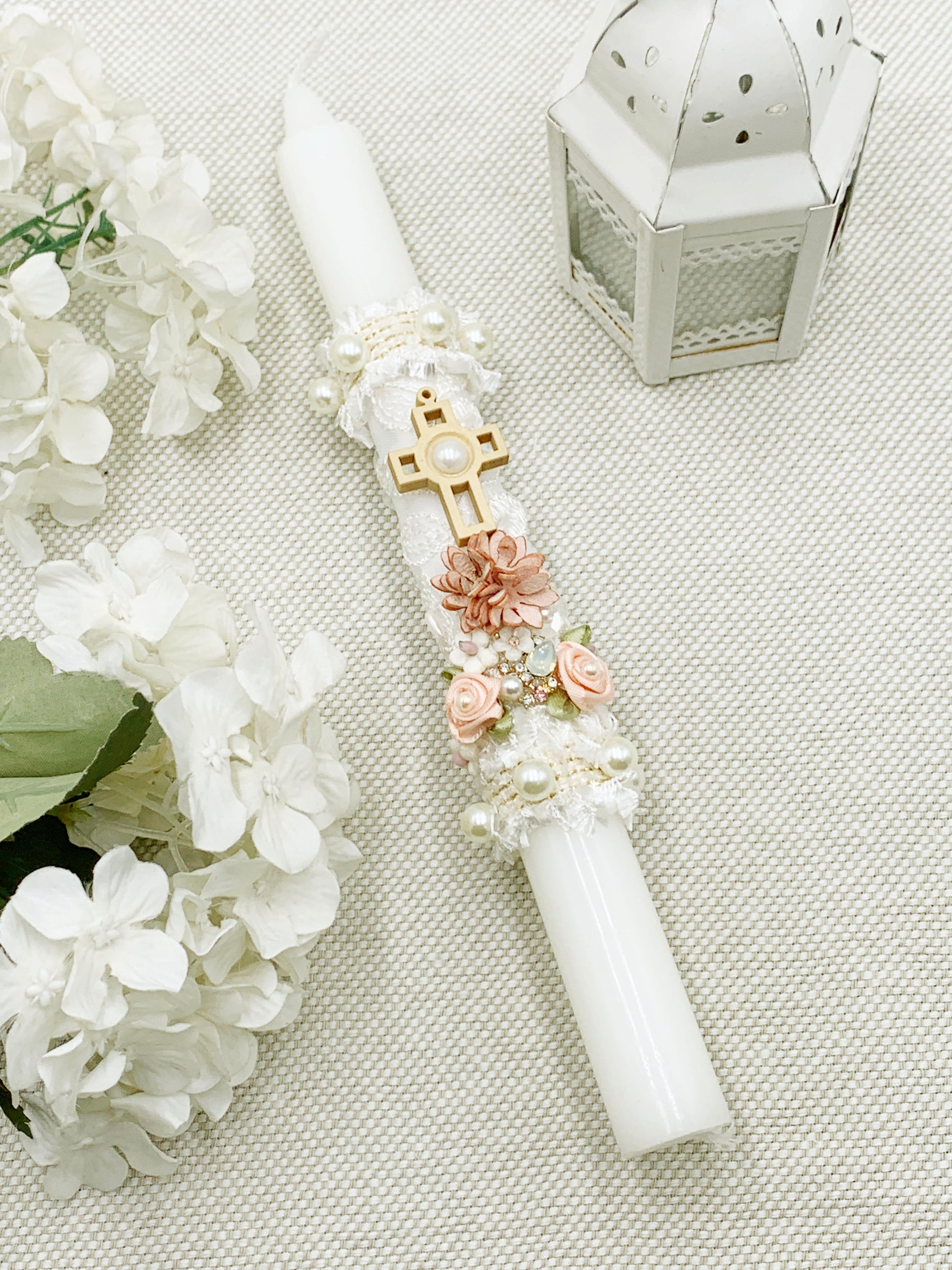 Candela lisa hecha a mano y decorada artesanalmente. Combinable 100% con nuestros otros artículos de colección.