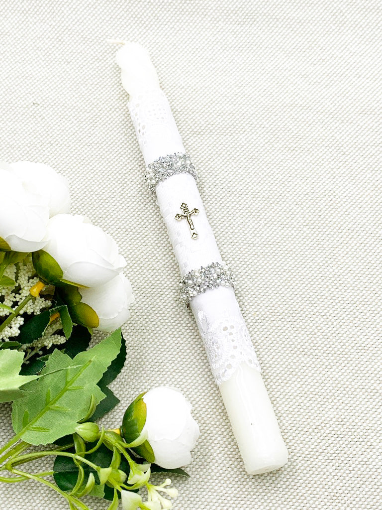 Candela torneada con labrado y cruz plateada mini
