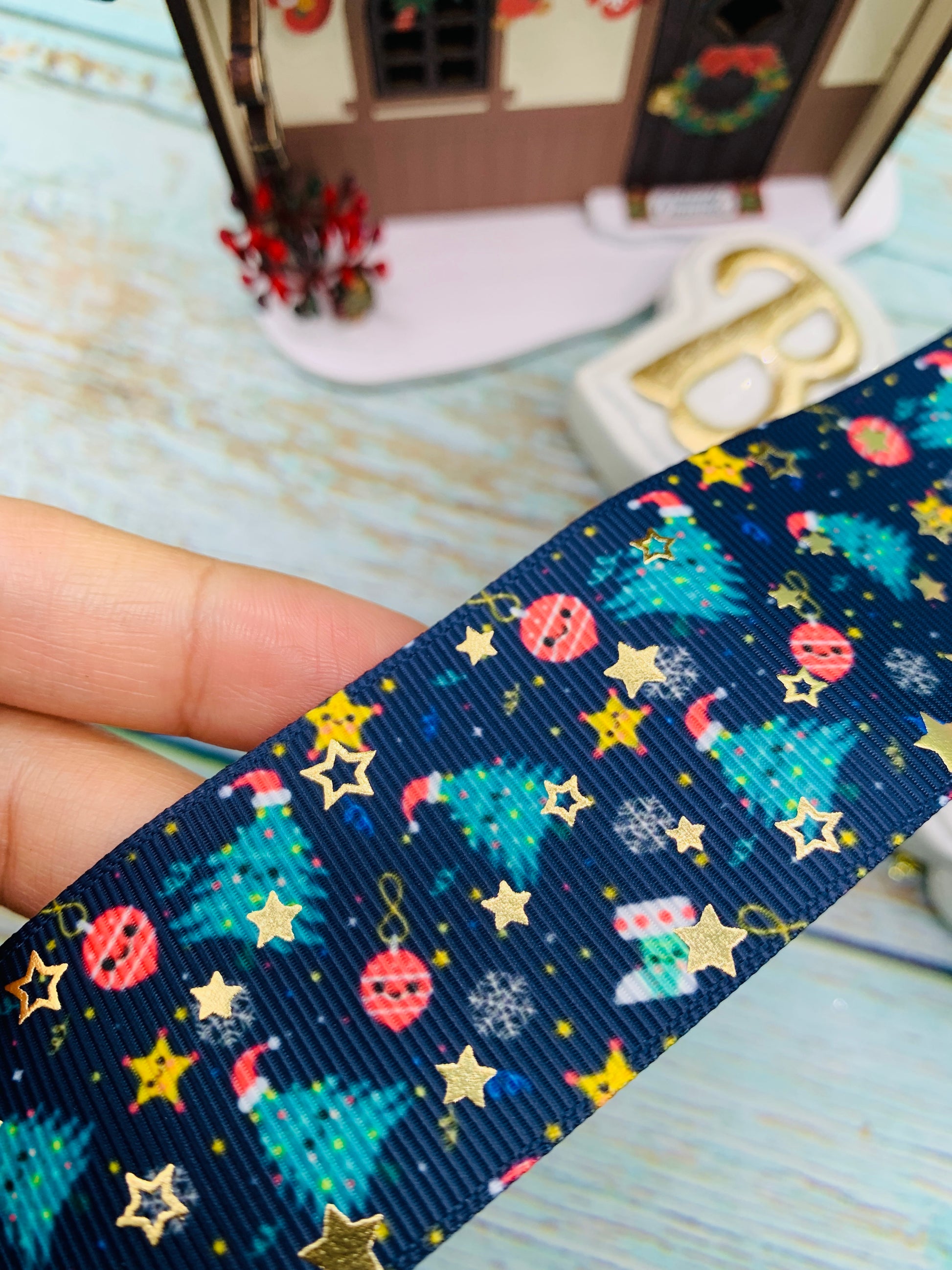 Cinta temática navideña con foil.