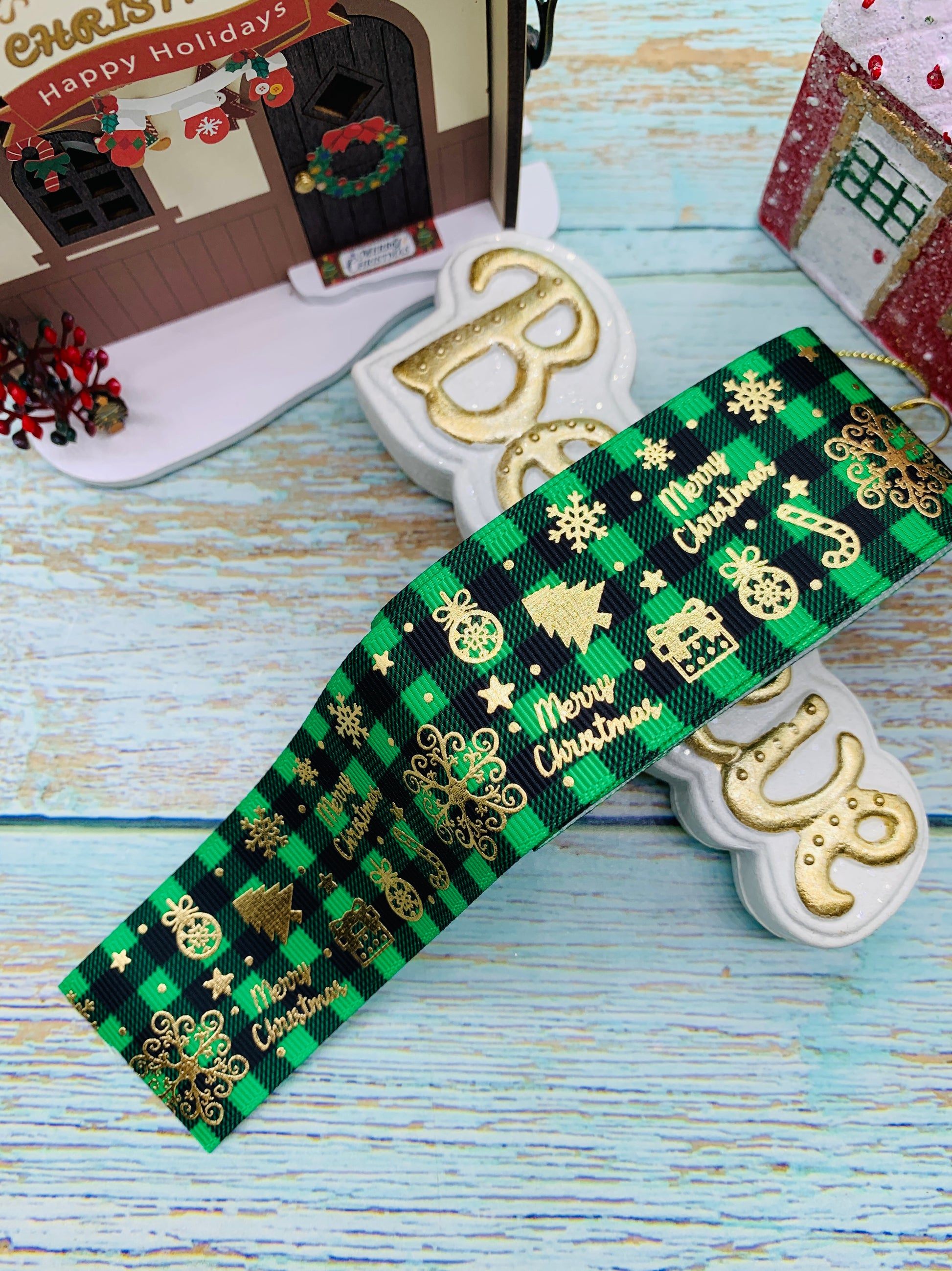 Cinta temática navideña con foil.