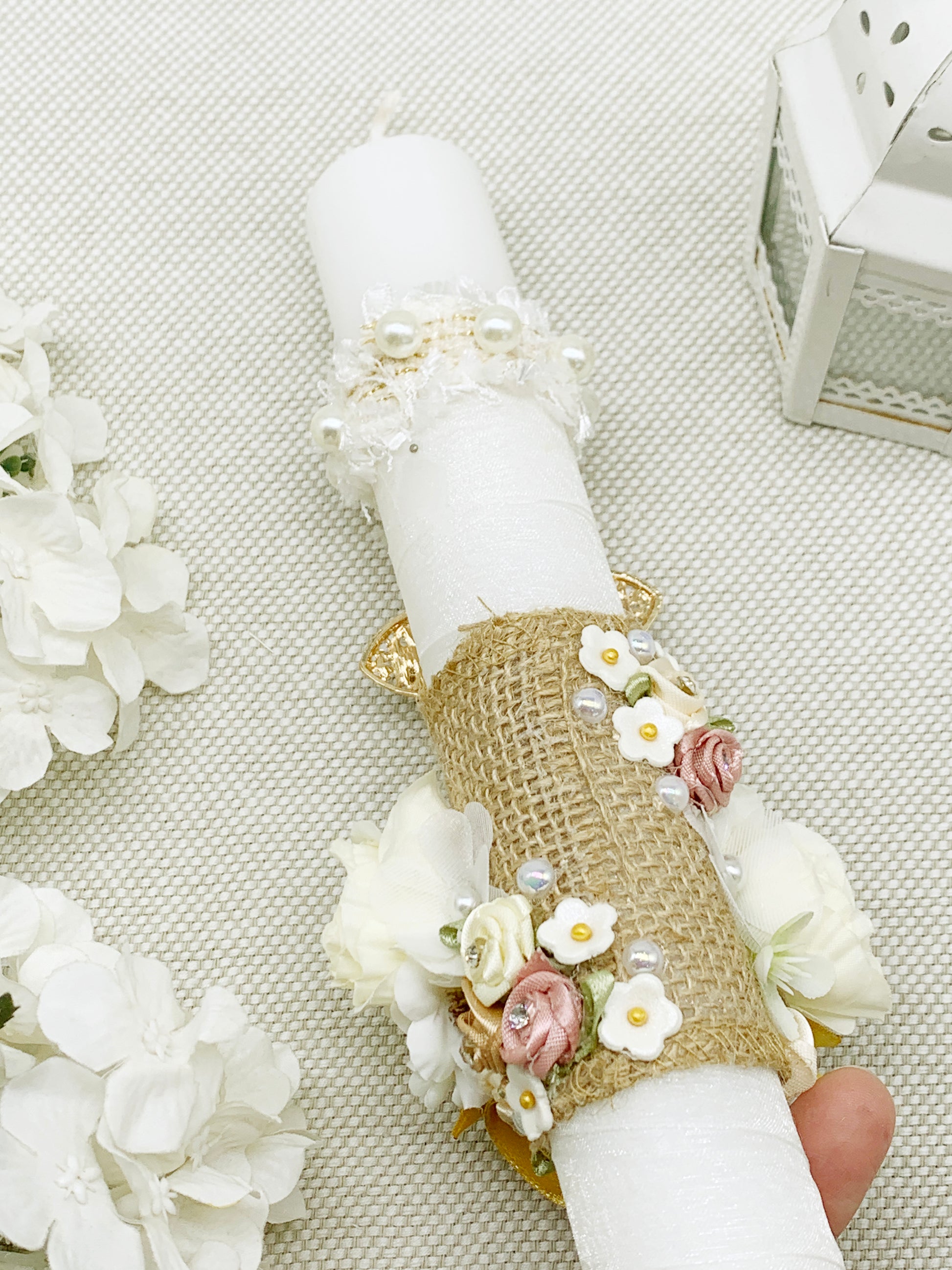 - Cirio bautismal decorada artesanalmente.