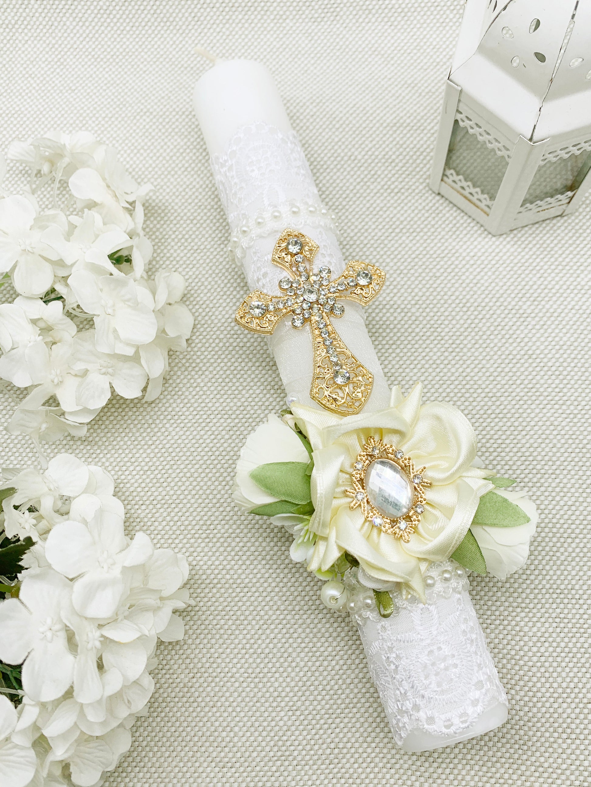 - Cirio bautismal decorada artesanalmente.