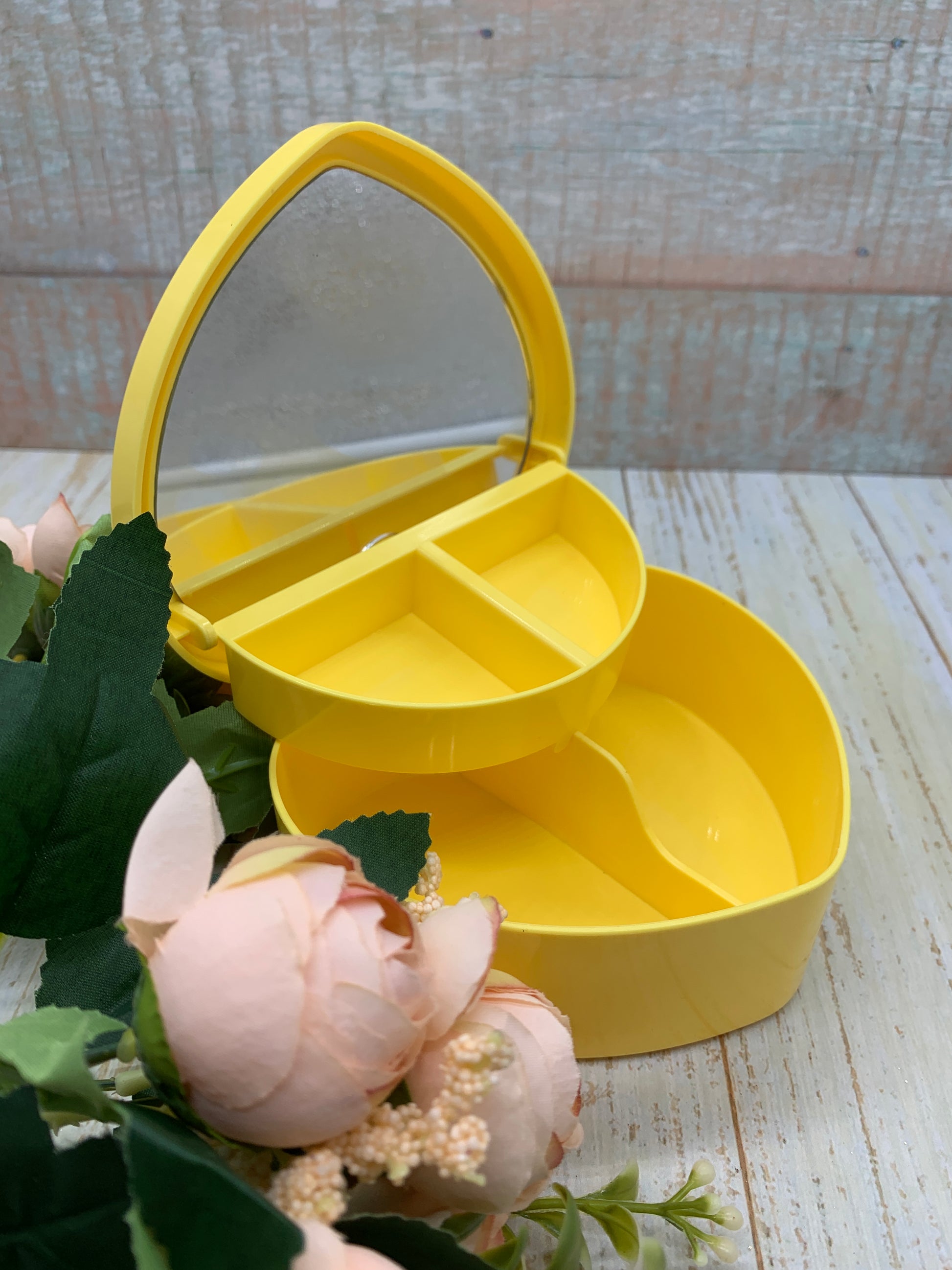 Joyero con forma de corazón con espejo.