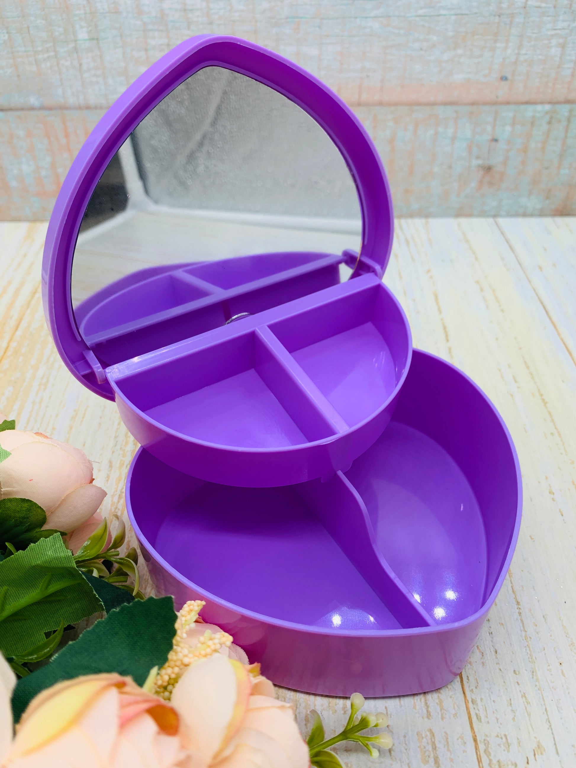 Joyero con forma de corazón con espejo.