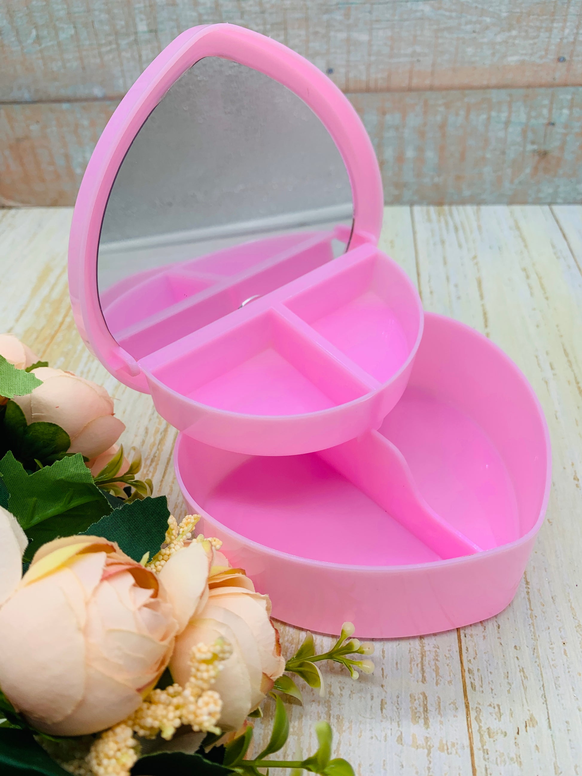 Joyero con forma de corazón con espejo.