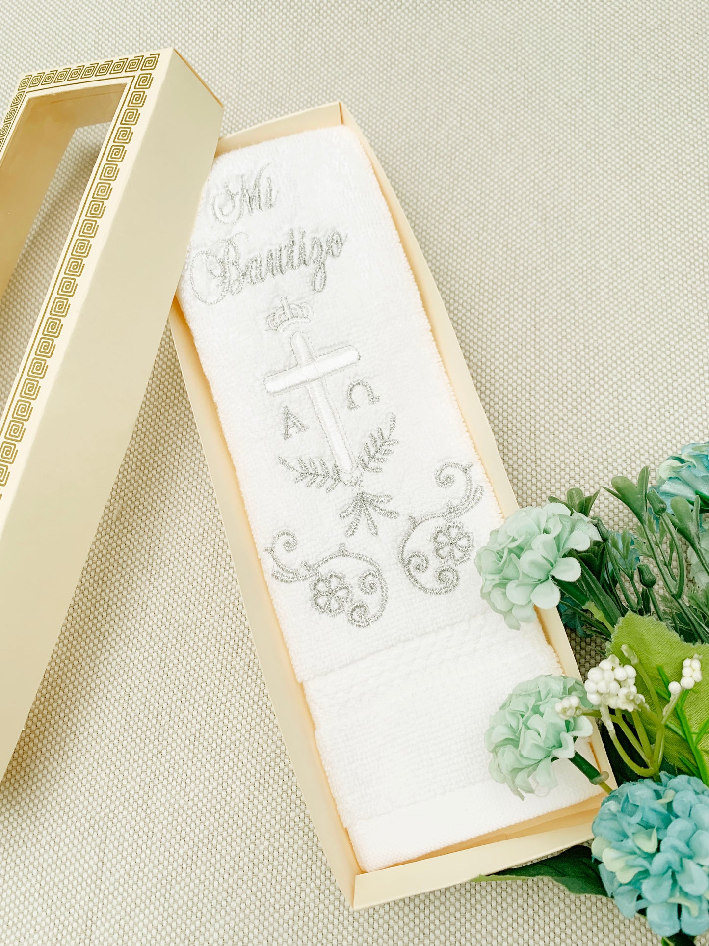 Pañito bordado con hilo metálico dorado y plateado a elegir, incluye cajita de guardado.