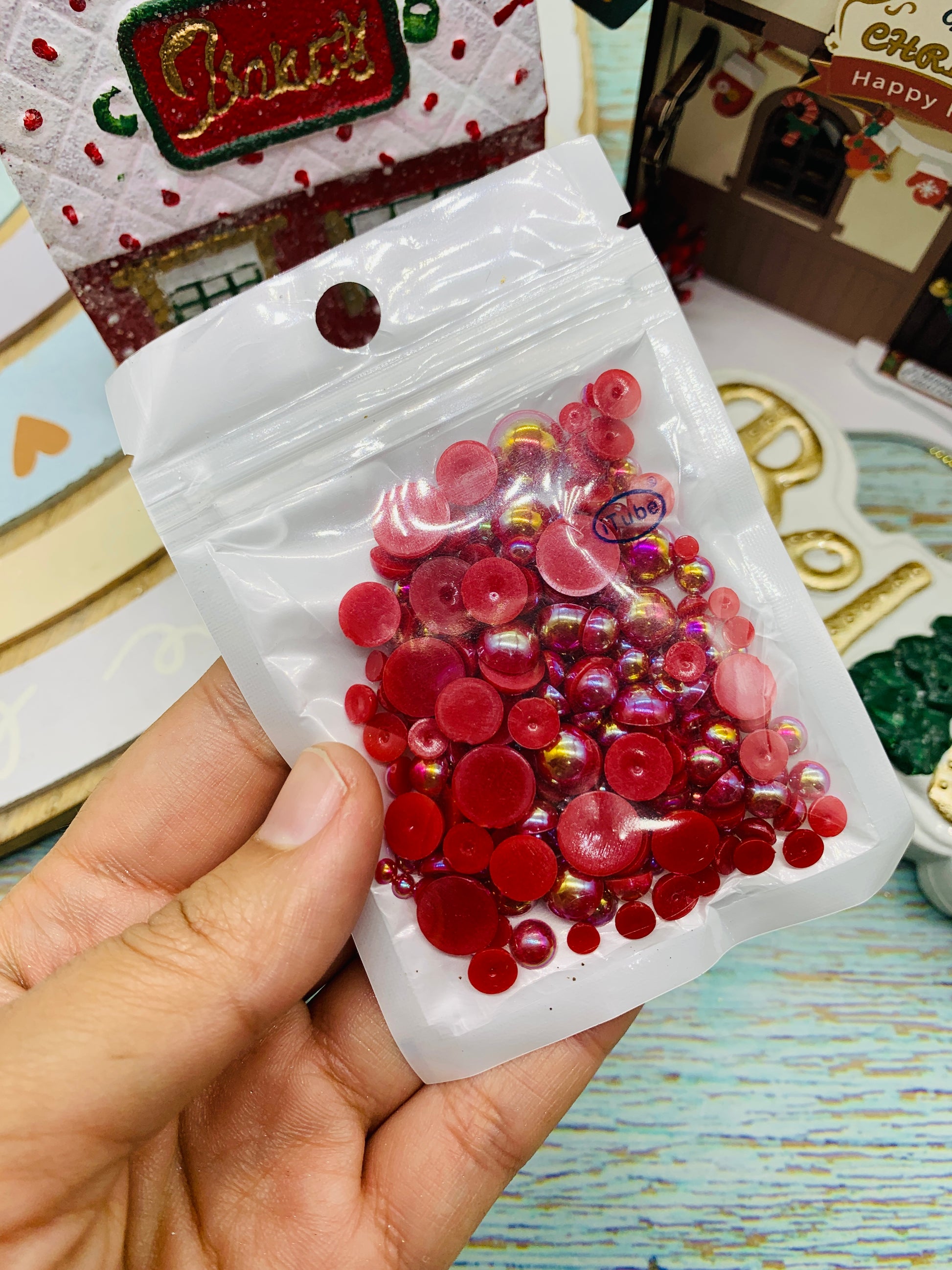 Pedrerías rojas navideña diferentes tamaños en paquete