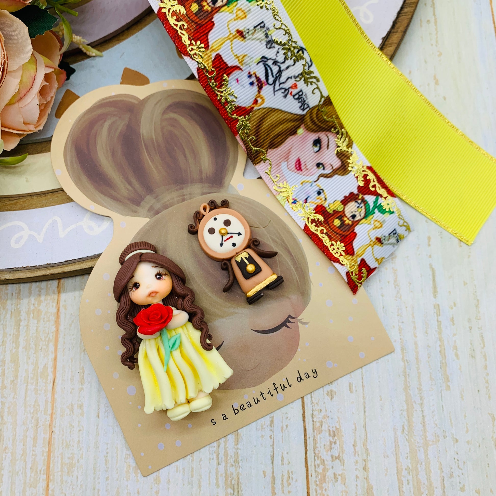 Set crea tu lazo/moño + porcelana temática Bella y Bestia Modelo 8