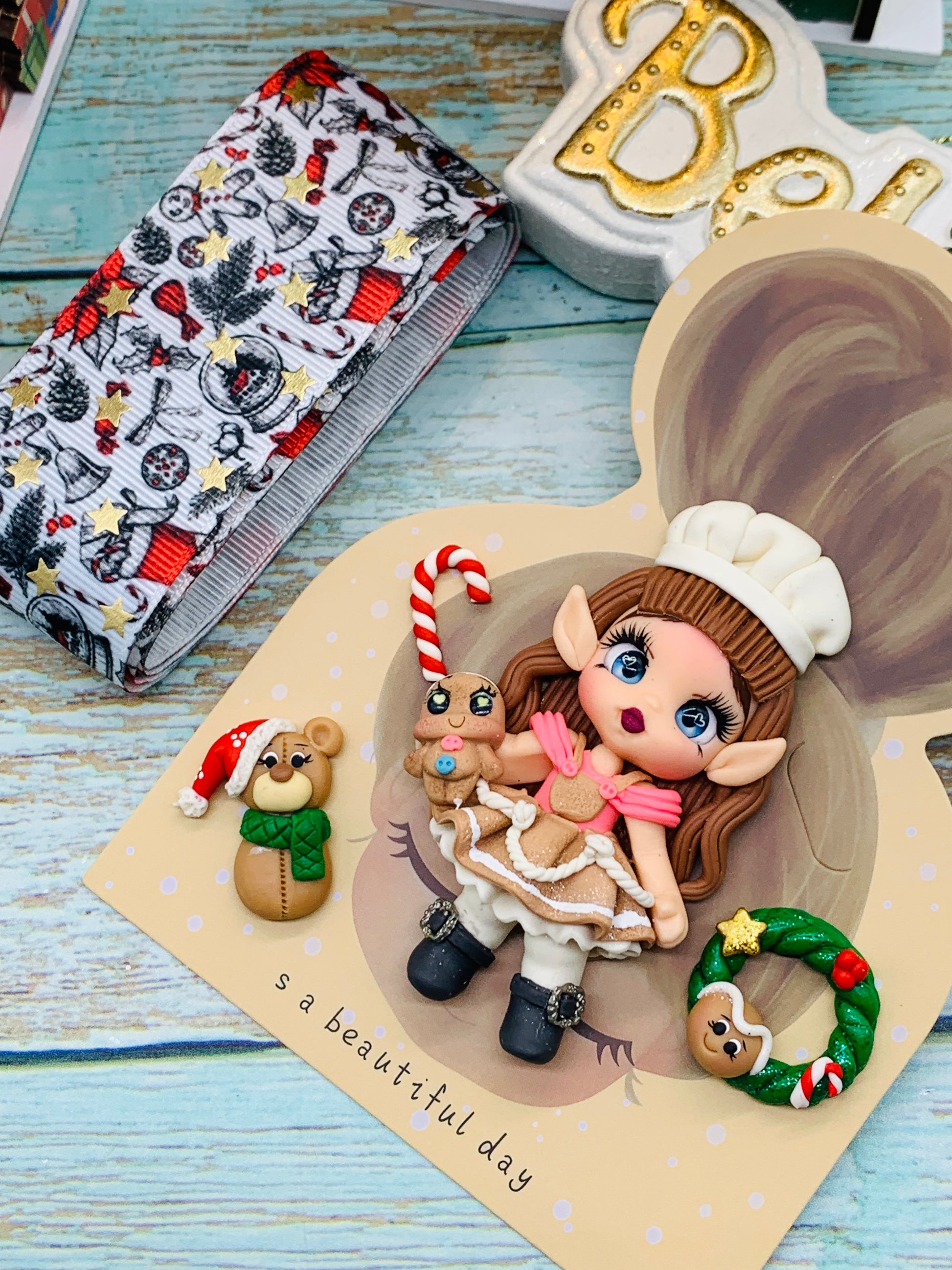 Set crea tu lazo/moño + porcelana temática Navidad DUENDES - MODELO 3